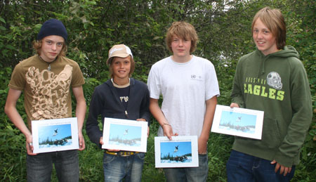 Med Herman susende gjennom lufte, sitter Joakim, Magnus og Stein og slapper av i alpinbakken i et strålende vintervær. Nå får bildet hedersplass i kantina, sammen med tidligere års vinnere. De fire gutta fikk utdelt hvert sitt innrammede eksemplar av vinnerbildet under 8.klasse sin siste dag på skolen før sommerferien. Finn en fin plass på gutterommet og heng det opp, gutter! Et artig minne.