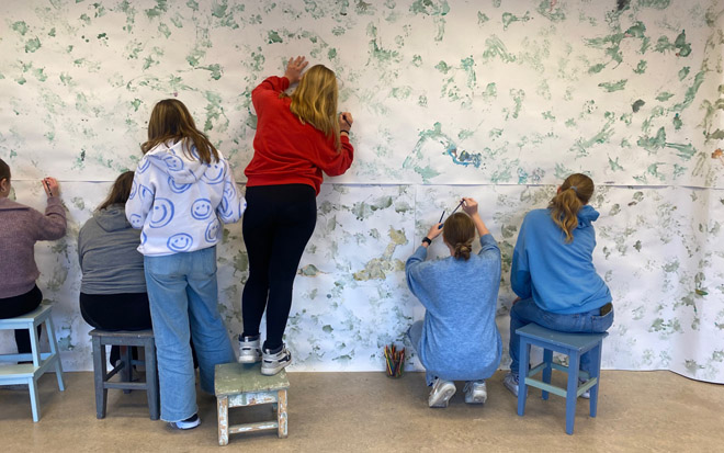 Fra bare noen flekker og linjer på papir kan det trylles frem fantasifulle verdener. Kunstner Hilde Grønstad Sunde har utfordret 9. trinn.