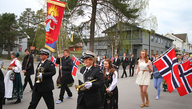 Rekordmange elever deltok under årets 17.mai-tog på Rena. Det er lenge siden vi har sett så mange marsjere bak Åmot ungdomsskoles fane, i forbindelse med nasjonaldagen vår. Hyggelig :)