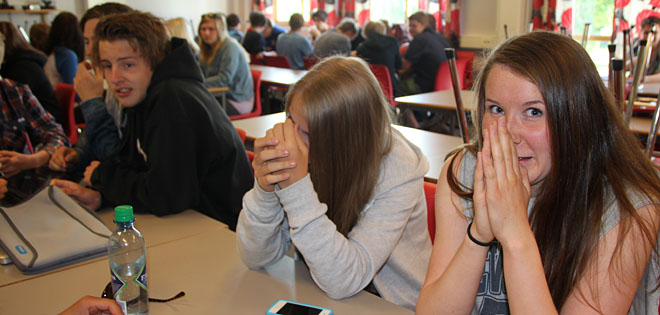 svært spente elever møtte hverandre natt til mandag i foregående