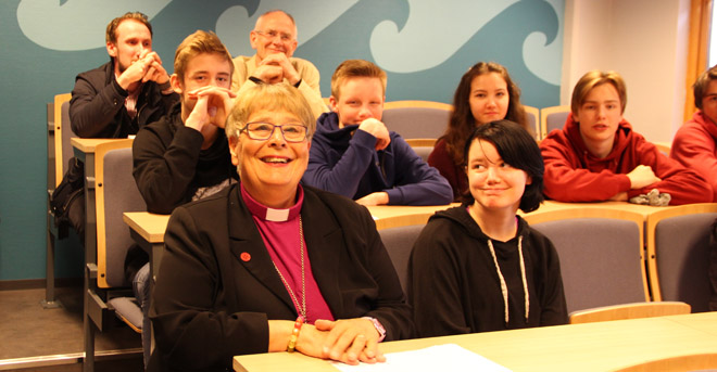 Som kjent er biskop Solveig Fiske denne uken på bispevisitas i Åmot kommune. I den forbindelse ønsket hun å treffe ungdommer fra Rena. Det var derfor naturlig å ta turen til skolen vår, hvor hun fikk et interessant og hyggelig møte med våre 10. klassinger.