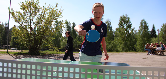 Denne våren har elevene fått et nytt tilbud i friminuttene. Et splunkende nytt bordtennisbord, beregnet for utebruk, har fått plass i skolegården. Bordet er et resultat av den såkalte "skolemillionen" - og har blitt populært blant mange elever.