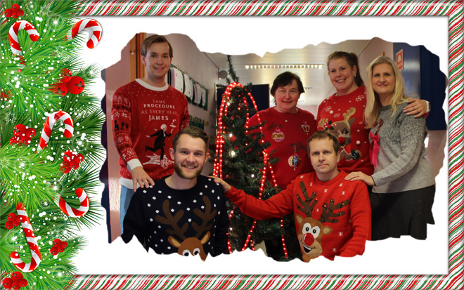 1 . desember markerer startskuddet for julemåneden, og i den anledning stilte en rekke ansatte i dag med særdeles lekre julegensere. Disse vil bli flittig brukt i tiden frem mot julehøytiden. Vi regner med at flere kolleger følger de gode eksemplene utover i måneden :)