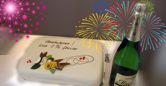 I dag ble personalet ved Åmot ungdomsskole overrasket av rektor Ellen og inspektør Helge Olav. Under lunsjpausen vanket det både bløtkake og alkoholfri champagne, og med god grunn: I løpet av første halvdel av skoleåret har de ansatte kun hatt et sykefravær på 1%! Ikke verst!