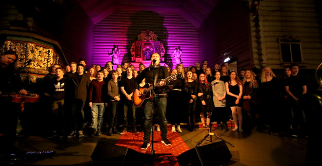I to dager har 9. trinn deltatt på låtskriverkurs sammen med den kjente musikeren, Askil Holm. Torsdag ble det hele avsluttet med konsert i Åmot kirke. Holm sørget for en gnistrende konsertopplevelse, og mot slutten av det hele bidro elevene som gjesteartister på to av låtene.