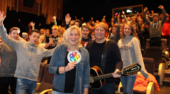 9. trinn har i dag gjort unna den første av to dager med låtskriverkurs sammen med Rulle Smit og Askil Holm. Med stort engasjement har de to erfarne og dyktige kursholderne lært elevene mye om hvordan man kan jobbe for å lage en egen sang..og torsdag blir det konsert med Askil og elevene.