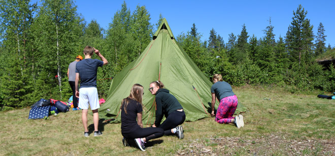 10. trinn er i disse dager ferdig med muntlig og skriftlig eksamen. Likevel har de knappe to uker igjen av skoleåret. Denne uken dro de på telttur til Valhall. Været var med dem på dagen og kvelden og det ble mye ballspill, frisbeekasting og sosialt samvær rundt bålet.