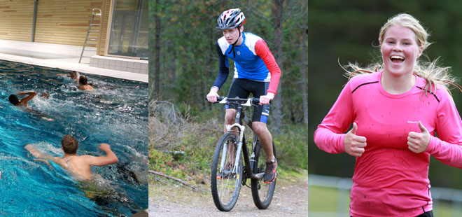 Elevene på valgfaggruppa i Fysisk aktivitet og helse - med vekt på utholdenhet - har denne uka gjennomført en krevende triathlon; 150 meter svømming, 7 kilometer sykling og 2 kilometer løping.