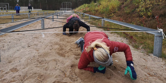 Elevene i valgfag utholdenhet er noen tøffinger. Forrige uke foregikk undervisningen i Rena leir. Her gjennomførte de - i lag på fem - granatkasting med påfølgende løp gjennom hinderløypa. Målet var å komme gjennom hinderne raskest mulig. En ekstra utfordring var at de måtte bære med seg et bildekk, uten at dette kunne berøre bakken.