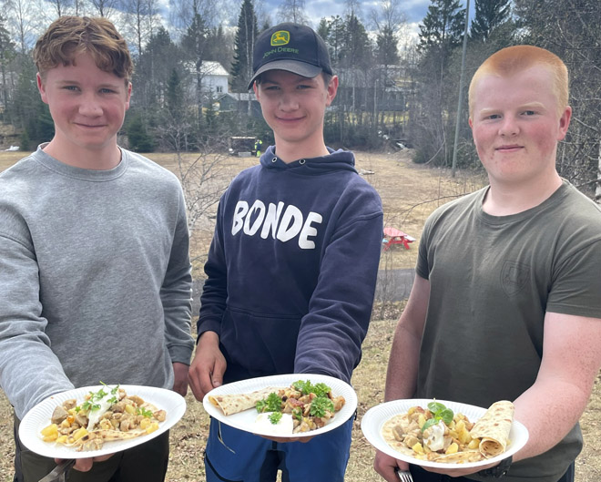 Valgfaggruppa i friluftsliv bruker mye av tiden sin ute. Da er det på sin plass å lære om matlaging under åpen himmel. Mat og helse-lærer Karen, har bistått med tips. Elevene har fyrt opp bål, stekt pinnebrød og pannekaker. Det ble også lagd en velsmakende dessert med bær som elevene plukket i høst.