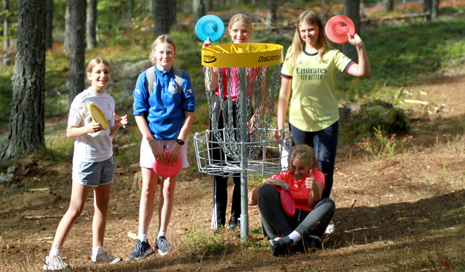 Rundt idrettsanlegget i Rena leir har det i år blitt satt opp en flott 17 hulls frisbeegolfbane. Mange åmotinger har benyttet seg av tilbudet i sommer, og i dag tok valgfaggruppene i ballspill og utholdenhet turen for å prøve det engasjerende spillet.