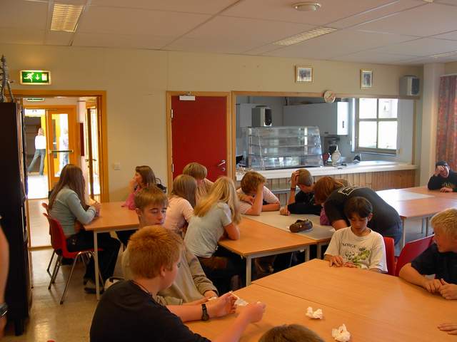 I dag hadde årets 9. klassinger første skoledag. Mye praktisk informasjon og utdeling av bøker første dag. Men det ble også tid til en liten vaffelfest i kantina. Det var Hildegunn og Åshild som var vaffelsjefer. Her er noen bilder fra partyet: