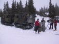 Ved hjelp av forsvarets beltevogner ble vi alle slept med tau frem til