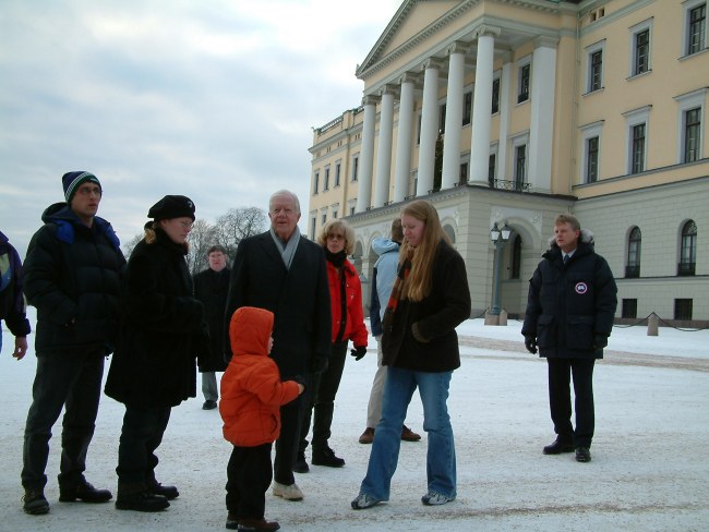 Familien Carter utenfor slottet.