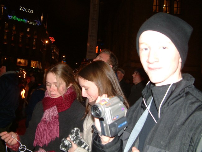 Anne, Siri og Erik venter på fakkeltoget.