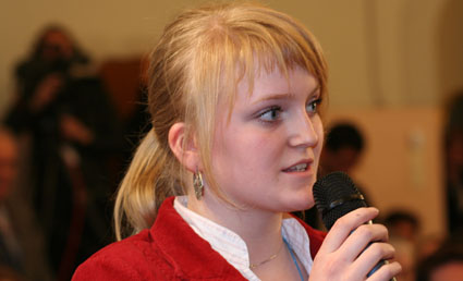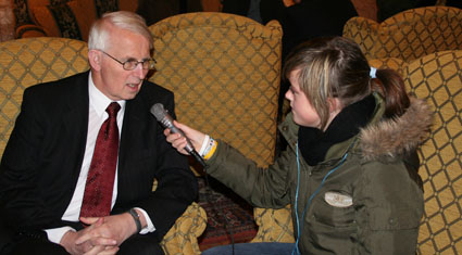 Et stort høydepunkt kom også under den direktesendte Nobelkonserten. Vi ble temmelig overrasket da Gladys Knight plutselig satte seg ned og og fortalte om den unge jenta fra artistenes pressekonferanse tidligere på dagen, som hadde stilt et viktig spørsmål om ungdom og fredsarbeid. Dessverre hadde hun ikke fått muligheten til å svare under pressekonferansen, men nå ville hun komme med sitt svar! Journalisten hun snakket om var ingen ringere enn vår egen Ingeborg fra 8.klasse!! Moro!! Midt i vårt Oslo-opphold fikk vi også besøk av Kanal 24-reporter Mairi McDonald som laget et fyldig innslag til ungdomsprogrammet "Jång" på Kanal 24. Her er et redigert utdrag fra den delen