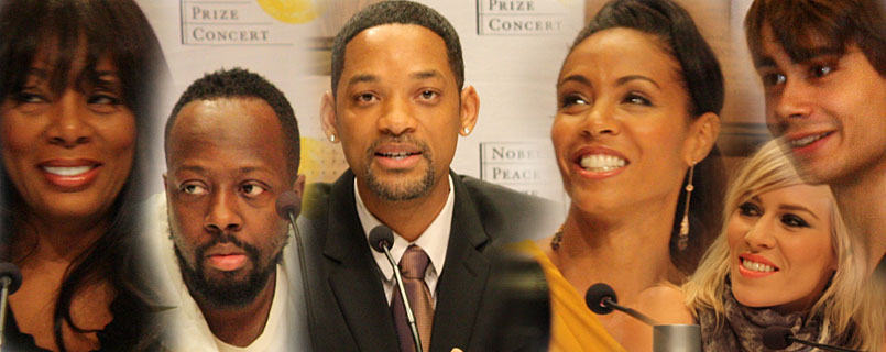 Alle årets artister var til stede under årets pressekonferanse før Nobelkonserten. Blant dem konfransierene Will Smith og kona og Jada Pinkett Smith, som stjal det meste av showet. >>