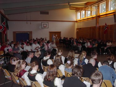 Allsang med ”Mykje lys og mykje varme” avsluttet den høytidelige delen i gymsalen. Nå ventet kaffe, brus, kaker og mat i kantina. Etter en snau time var det hele over og vi kunne alle ta avskjed etter den flotta tida vi har hatt sammen.