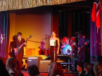 Så hadde altså kvelden kommet. For siste gang var vi alle samlet, før vi nå splittes. Fra høsten av venter videregående skole med nye klassekamerater, nye omgivelser og nye lærere. I løpet av den nærmere tre timer lange avslutningsfesten stod litt av hvert på programmet. En fullpakket gymsal ble ønsket velkommen av virksomhetsleder Dag Lerdal, før den mer ”kunstneriske” delen overtok. I to bolker fikk vi musikkinnslag ved bandet bestående av elever fra 10a: Tor Magne på gitar, Ole Martin på bass, Steffen på trommer og Mona på imponerende vokal. Vi fikk cover-låter fra artister som Red Hot Chili Peppers, Nirvana og David Bowie. Kjempebra!!