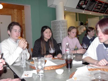 Oppholdet i Oslo i desember ble en stor suksess. Elevene fikk møte og intervjue flere berømtheter enn de fleste av oss kan drømme om. Resultatet har vi samlet på vår egen web-side, slik at det er tilgjengelig for uoverskuelig fremtid. Det er verdt en titt! Etter skoletid sist fredag var det altså klart for en aldri så liten pizza-fest på ”Kebaben”. Det er hyggelig at de ansvarlige for ”Ungdomsavisa” satte såpass stor pris arbeidet vi gjennomførte. På ”Kebaben” dekket vi til med langbord, og snart vanket det både brus og pizza på alle! Det smakte godt og vi hadde det riktig hyggelig!