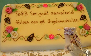 Tirsdag 23.april ble en litt spesiell langdag for oss ansatte med tilknytning til Åmot ungdomsskole, og spesielt for Torunn Berge som takket av etter over 30 år i Åmot-skolene. Etter taler, kaker og gaveoverrekkelser i kantina går hun nå over i pensjonistenes rekker.