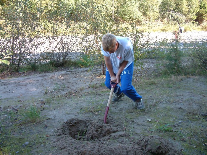 Olav jobber med å få i stand hullet til kokegropa!
