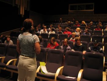 Politibetjent Sissel Berge sto for opplegget under det to timer lange opplegget om rus. Her ble det først og fremst lagt vekt på alkoholproblematikken.