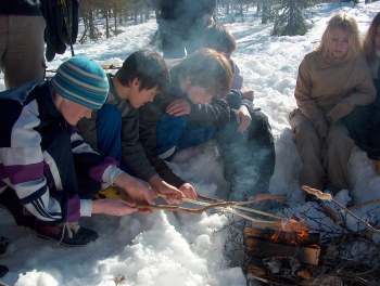 vi også opp bål og det varte ikke lenge før de første pølsene var grillet.