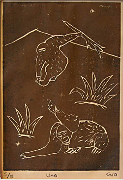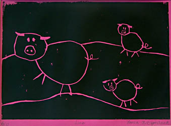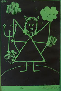 Er du interessert i å lære mer om de ulike grafiske teknikkene som brukes, bør du lese videre.. Det var dessuten disse teknikkene som var benyttet i utstillingen "Menneskerettane" fra turneorganisasjonen. I denne utstillingen finner vi følgende: Høytrykk: Sverten som blir overført til papiret ligger på de høyeste punktene/flatene på plata. Linosnitt Når vi skal bruke ett linoleumssnitt trenger vi en linolplate, spesielle linokniver, vannbasert trykksverte, to ruller , spiseskje og helst et tynt Japan papir (annet papir funker også.) Vi begynner med å skjære ut på linolplata. Det vi må huske på er at det vi skjærer ut vil bli hvitt på arket. Etter vi har gjort dette ruller vi trykksverten over på plata, her er det viktig at vi bruker nok farge og får dekke hele. Når du er ferdig med dette legger du arket over og ruller med en ren rull. Vi kan også stryke over med en spiseskje, sånn at trykke blir enda sterkere og finere. Når vi nå skiller arket og plata fra hverandre får vi et spennende trykk. Tresnitt Tresnitt teknikken er svært lik linoliumstrykk. Man skjærer ut et trykk i en treplate eller trekloss også trykker man, akkurat som linoliumstrykk. Treslaget som blir oftest brukt er furu, det er fordi mange av billedkunstnerne ønsker å fremheve årestrukturen i treet. Det som er ulempen med å bruke furutre i tresnitt er at det treslaget er så hardt, så det er mange som bruker bjørk istedenfor. Det er fordi denne er passe hard og fliser ikke så lett. "Tail cut" Tail cut er en høytrykksteknikk. Her blir det satt sammen bilder det fra flere lino- eller tresnitt ”plater” på ett bilde. Dyptrykk: sverten som blir overført til papiret ligger i fordypninger i flata. Etsing Dette er en trykkemetode som etser bort deler av trykkplaten. Trykkplaten er vanligvis kobber og det blir trykket på ekstra tykt bøttepapir med veldig stort press. Hele plata blir påført etsegrunn som hindrer etsing. Motivet blir tegnet ved å skrape bort etsegrunnen. Deretter blir det lagt i syre for at syra skal etse seg ned der etsegrunnen er borte. Sverten blir påført slik at den ligger igjen i gropene, for så å tørke bort det som ligger oppå. Akvatint Man begynner først med å drysse finknust harpiks utover metallplaten, som deretter plasseres over en glassflamme slik at harpikskornene smelter og fester seg til metallet. Former som er tenkt hvite i det ferdige trykket dekkes helt med etsegrunn. Platen legges i badet der syren angriper de små bare punktene mellom harpikse. De partiene som skal være mørkest må etses lengst, mens de lysere partiene etter hvert dekkes ut med etsegrunn. Ved trykking sitter trykkfargen der hvor platen er blitt ru av syreangrepet. Denne metoden kan gi alle valører fra hvitt til svart. |