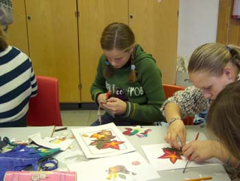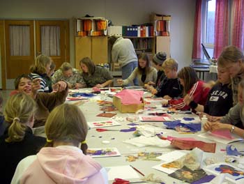 Den Internasjonale dagen er det elevene som bestemmer hva de vil gjøre. Det ser ut som de liker det de driver med for de sitter og ler og jobber hardt. Her er det noen bilder fra dekorasjons gruppen: