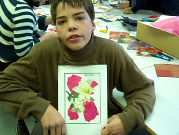 De klipper ut former og fasonger av gamle servietter. De pynter også med kinesiske tegn. Sigurd har jobbet intenst og lenge, her ser du hans slutt resultat: