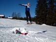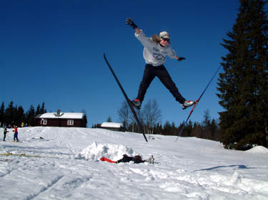 den nypreparerte hoppbakken.. Etter hvert som svevene ble lengre og mer og