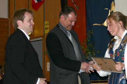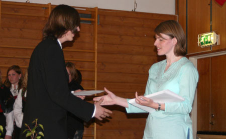 Det hele startet i skolens gymsal. Festkledde elever, foreldre, slektninger og lærere hadde møtt opp for å gjøre det hele til en minneverdig kveld. Dessverre var virksomhetsleder Geir Svehagen blitt syk, slik at "Tale for dagen" måtte utgå. Allikevel var det flere som tok ordet blant både lærerne og foreldrene. I tillegg ble det vist bilder på projektor fra ulike aktiviteter som elevene har deltatt i, i løpet av de tre årene ved skolen vår. Her kunne man tydelig se at tidene har forandret seg og at man har blitt eldre siden første dag ved Åmot ungdomsskole :) Det ble også vist bilder fra årets skoletur med de hvite bussene til Auschwitz. For øvrig en svært vellykket tur som ville sitte igjen i minnet for all tid. Vinnerne av årets skolebilde 2004/2005 ble også kåret. Her mottok elevene som var avbildet vært sitt innrammede fotografi.