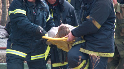 Skoleelever på tur blir rammet av salpetersyren og katastrofen er et faktum.