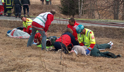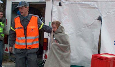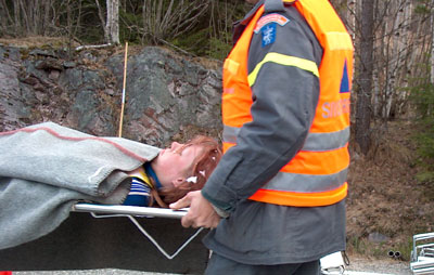 Elevene ble vasket, spylt og ”undersøkt” av helsepersonell. Våre elever fikk med andre ord reelt innblikk i hvordan en sånn type ulykke kan utarte seg. |