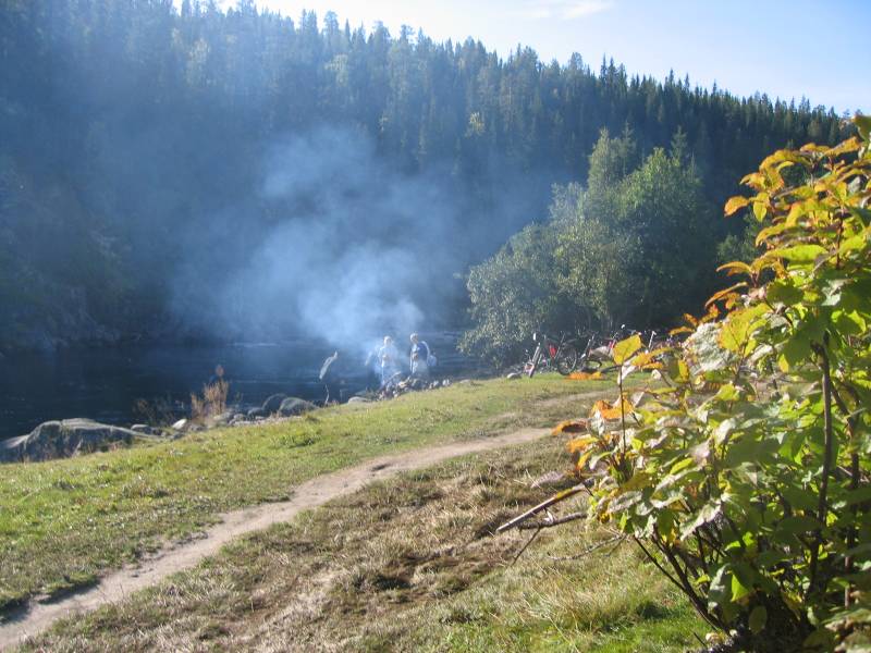 Vi tente også bål ved elva.