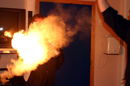 svi av spiker ved hjelp av strøm, steking av pølser med gafler (!), røyk,