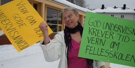 Fagforeningsleder ved Åmot ungdomsskole, Inger Lande, holdt en meget god appell, som Åmots lærere støtter til det fulle.