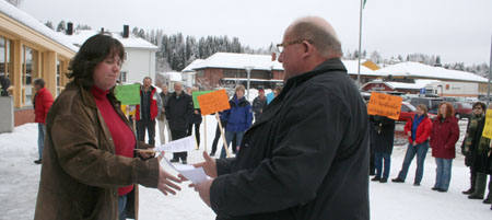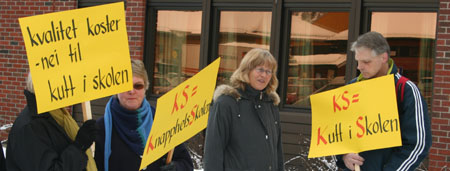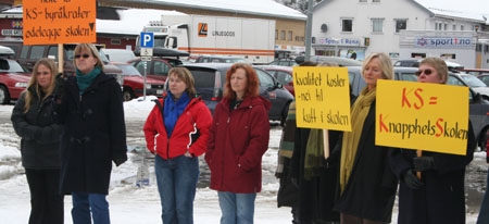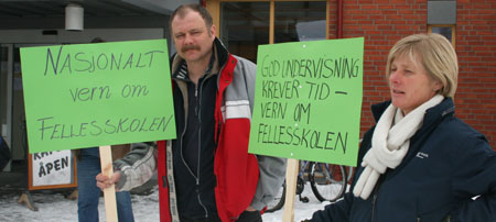 Vi oppfordrer også andre til å sette seg inn i hvilke konsekvenser det vil få dersom KS skulle få gjennomslag for sine forslag. 90 000 av landets lærere mener forslaget vil innebære en dårligere skole. Det bør også bekymre DEG! Oppgitte, men allikevel kampklare lærere fra hele Åmot møtte derfor utenfor Åmot kulturhus for å markere avstand til det man er blitt forelagt fra KS.