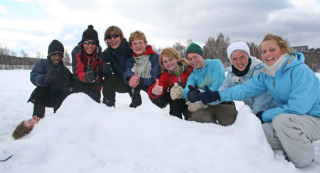 De to gutta holdt på "to the bitter" end, mens noe av de andre isfiskerne i 9.klasse rett fant ut at det var mer moro å lage en noe spesiell snømann den siste halvtimen av dagen.. Hm.. Jaja, gøy var det :)