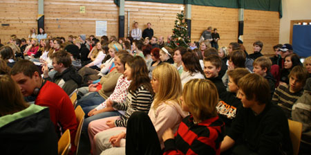 Årets siste skoledag ble en fin avslutning på året. Dagen startet med at hvert enkelt trinn var sammen. Her ble det julequiz, film og annen sosial aktivitet. Deretter samlet alle seg i skolens gymsal, hvor vi fikk taler, sang, gang rundt juletreet og ikke minst utdeling av karakterene.