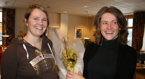 På den aller siste dagen før vinterferien, ble det overrakt blomster og litt til, til to av våre medarbeidere. Randi og Berit mottok gaver og pene ord som takk for innsatsen. De to hadde nemlig sine siste arbeidsdager ved Åmot ungdomsskole, iallfall for denne gangen..