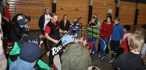 Den første uka har altså bydd på variasjon, spenning, utfordringer, sosialt samvær og mye mer. Heldigvis har vi lærerne på 9.team hatt god hjelp fra lokalsamfunnet. Vi retter derfor en stor takk til Edgar fra Intersport som holdt et interessant og lærerikt smørekurs, til Kristian Liberg fra Norsk Folkehjelp som stilte med scooter og spennende natursti på Skramstadsetra og til Arne Sveen fra Åmot jakt- og fiskeforening som hjalp til med utstyr og kyndig veiledning under pilking på Prestsjøen. Tusen takk alle sammen! Under første dag av årets vinteraktivitetsuker ble elevene engasjert med forberedelser av skiarrangement, tråkking av løype, planering av unnarenn i hoppbakker, snowboard-hopp, osv. I tillegg stilte altså Edgar fra Intersport velvillig opp med smørekurs i gymsalen. Her fikk elevene en god oversikt over det som skal til for å få godt feste og god glid. Absolutt veldig nyttig å ta med seg for noen og enhver.