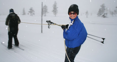 Dag to foregikk i skiløypene ute i skogen. Med buss satte vi kursen mot Skramstadsetra. Derfra gikk turen til Thingstadsetra, hvor dagens aktiviteter foregikk. Kristian Liberg laget i stand natursti som grupper à 4-5 elever svarte på. I tillegg tok han med elevene på snørekjøring – populært! Ingen tvil om det. Ekstra jubel og latter fikk vi da den ene etter den andre forsvant i en stor sky av snø. Det er ikke bare, bare å bli dratt etter scooter i tau, nei J .
