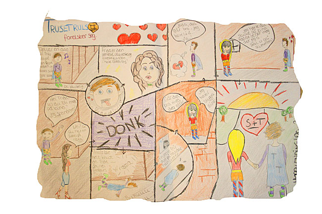 I den siste tiden har elevene på 8.trinn jobbet med tegneserier. De har lært om sjangertrekk, bobler, perspektiv, utsnitt, lydhermende ord, ruteoppbygging og mye mer. Som avslutning på det hele skulle de lage sin egen tegneserie. Med stor iver og lyst jobbet de i vei. Nå er resultatene klare, og vi har samlet noen smakebiter fra elevenes arbeid.