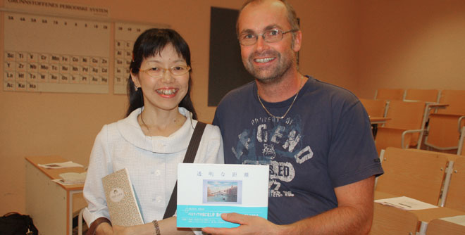 Lederen for den japanske gruppen satte pris på mottakelsen i Åmot. Her sammen med rektor Svehagen.