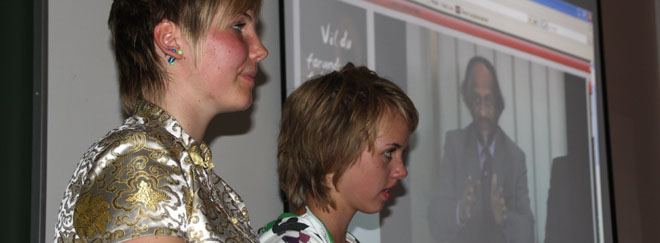Ved hjelp av en Powerpoint-presentasjon fikk gjestene en grundig innføring i bakgrunnen for prosjektet, hvordan det lar seg gjennomføre og hvilke erfaringer elevene/lærerne gjør. Selvsagt ble en del av høydepunktene fra de sju årene som prosjektet har eksistert presentert ved hjelp av bilder og videoopptak.
