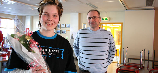 Etter en slik idrettsprestasjon, måtte selvsagt skolen og klassekameratene gjøre ekstra stas på den treffsikre jenta. I kantina dukket rektor opp med blomster og gratulasjoner, mens klassekameratene koste seg med saft og boller.