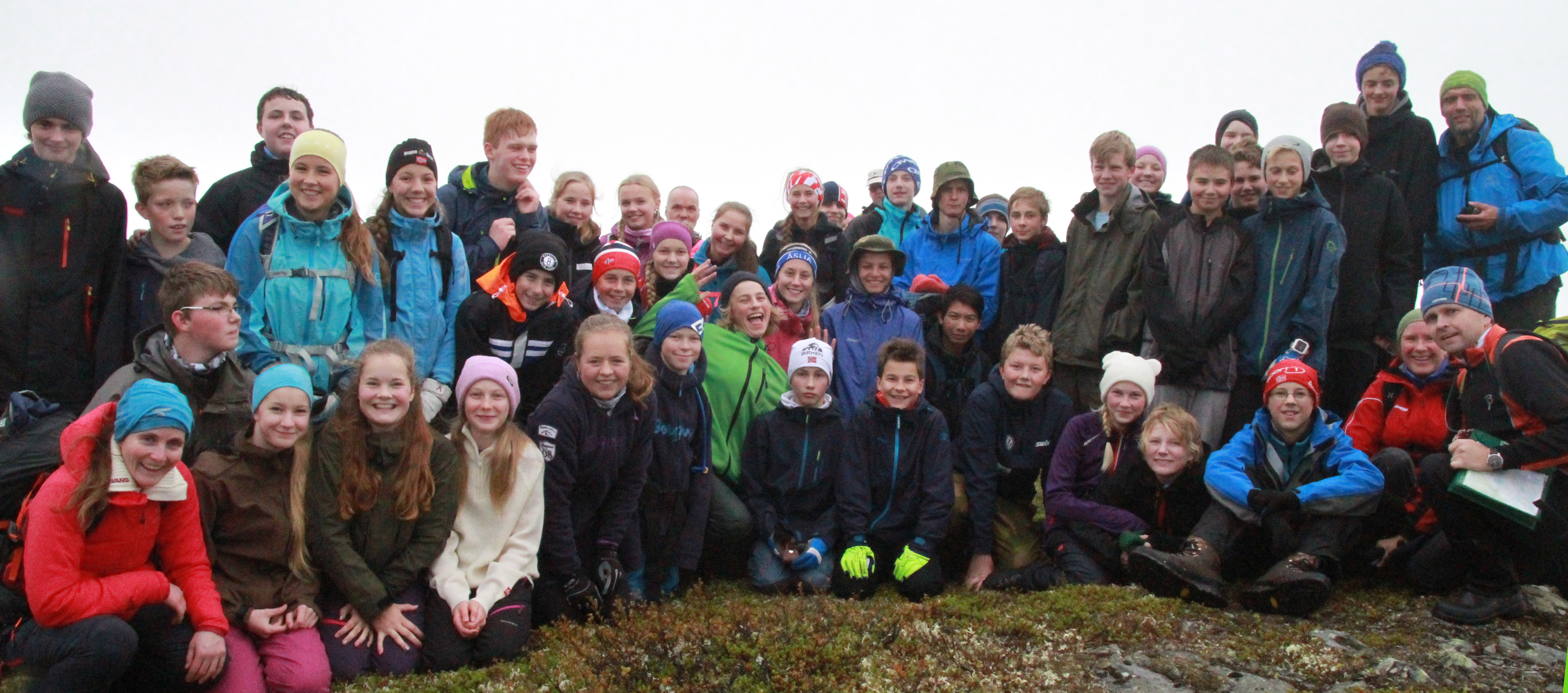 42 elever, fem foreldre og tre lærere på Åmots tak - 1062 moh. (Klikk på bildet for full størrelse)