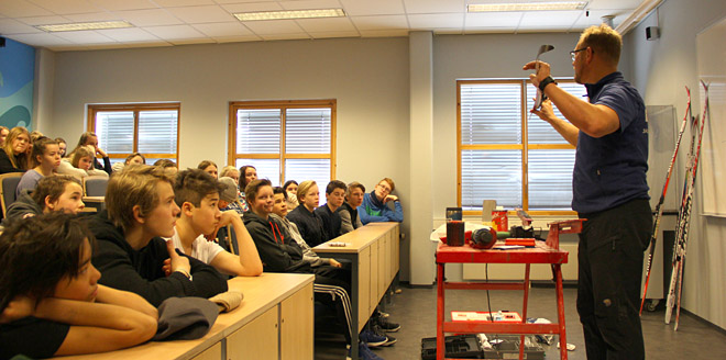 Å ha gode ski - og kanskje spesielt godt feste - er som oftest veldig viktig for en fin skiopplevelse. En lydhør og engasjert forsamling, lærte mye nettopp dette - og vi er helt sikre på at mange lærte mye som kan gjøre neste skitur enda bedre. Her fikk elevene presentert både grunnprinsippene, samt små "triks", som gjøre smørejobben lettere og mer effektiv.